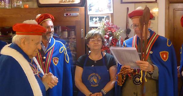 “Approfondite indagini svolte da questo priorato su segnalazione del Priore Referendario hanno dato possibilità di mettere in giusta luce le Vostre capacità Sociali, Culturali ed Enogastronomiche tese a valorizzare le migliori produzioni della nostra Italia. Pertanto...”. Squillino le trombe, rullino i tamburi gente. A San Sebastiano, e più precisamente in frazione Saronsella, c’è una nuova autorità. Udite udite... Clara Viano, storica cuoca e titolare della trattoria “La Pace”, è ufficialmente Commendatore d’Onore nella Confraternita d’la Tripa ‘d Moncalè. A norminarla è stato direttamente il priorato reggente, nella serata di venerdì scorso. La cerimonia s’è tenuta al termine della consueta cena annuale a base di trippa, giunta alla decima edizione. I piatti, consistenti in cinque antipasti, un primo ed un secondo tutti rigorosamente a base di trippa, sono stati preparati dai cuochi della Confraternita della Trippa di Moncalieri mentre Clara Viano ha messo a disposizione, per l’occasione, la cucina del locale. Nella serata di venerdì i partecipanti alla cena erano circa 160 e tutti hanno levato i calici alla consegna della pergamena di “Commendatore d’Onore” a Clara Viano. Classe 1953, Clara Viano è una sansebastianese doc. Dopo aver frequentato le scuole primarie nel suo paese e a Casalborgone, inizia gli studi per segretaria d’azienda a Chivasso. A 14 anni, come cameriera, s’avvia al mondo della ristorazione alla Trattoria dell’Abate gestita da Rina Ardissone, negli anni maestra e valida consigliera. E’ lì, all’Abate, che qualche tempo dopo nasce l’idilio d’amore con Mario Molinaro, suo attuale marito. Dopo le nozze del 1975, con la suocera Rina, titolare della antica Trattoria La Pace, inizia la collaborazione lavorativa sia in cucina che in sala: memorabili e richiestissime le sue frittate di cipolla e pesci in carpione. Nel 1980 viene inaugurato il nuovo locale della Pace, con la suocera Rina che cede il testimone a Clara Viano. Pochi anni dopo la trattoria si amplia con la costruzione di un nuovo salone che è tuttora operativo. Il marchio della Pace è sempre lo stesso: la cucina tipica piemontese, sempre all’avanguardia con piatti innovativi risultato dei corsi di cucina e di aggiornamento ch Clara Viano continua periodicamente a seguire. A settembre 2016 le viene conferito il Premio Fedeltà al Lavoro presso la Camera di Commercio di Torino. E da dieci anni ormai Clara Viano si dedica con entusiasmo alla serata della Trippa, proponendo ricette e piatti sempre nuovi.
