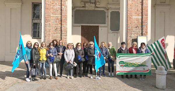 Le dipendenti di Euroristorazione sotto Palazzo Santa Chiara