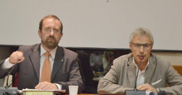 Il sindaco Baracco (a sinistra) durante il consiglio sulle aree ATA