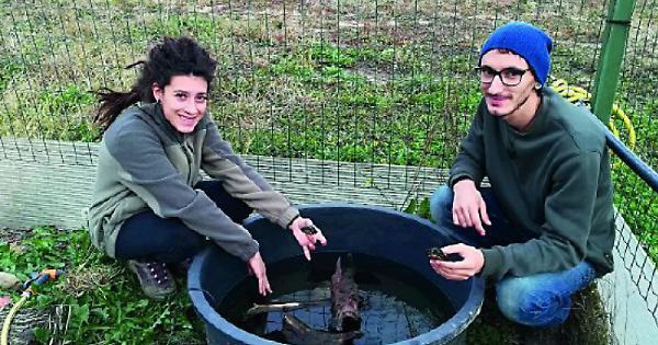 NATURALISTI Silvia Fiore e Riccardo Cavalcante con alcuni esemplari di Emys Orbicularis