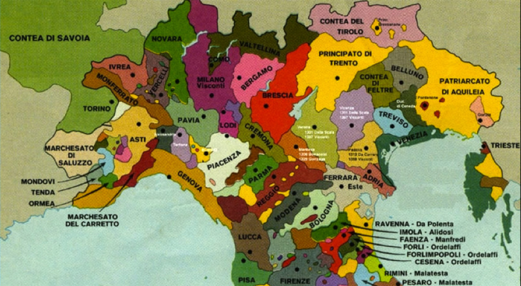 Sempre stando ai resoconti dell’Azario, Volpiano e San Benigno erano territori soggetti ai Conti di Biandrate. Questa era una famiglia nobile dell’Italia settentrionale, il cui nome deriva da quello del castello (distrutto nel 1168) nei pressi di Biandrate, sulle rive del fiume Sesia (Novara). Dall’XI al XIV sec. i Biandrate ebbero possedimenti in più di 200 località piemontesi e delle vallate alpine meridionali. In Canavese oltre ai Conti di Biandrate, si contendevano il potere i due rami dei Conti del Canavese, i San Martino ed i Valperga e il ramo cadetto dei Conti di Savoia ovvero i Savoia-Acaja, Principi di Piemonte. Nel XIV secolo la situazione politica canavesana era quindi quanto mai intricata e complessa.