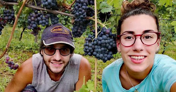 Lorenzo simone tra i filari delle sue vigne con la collaboratrice Ilde