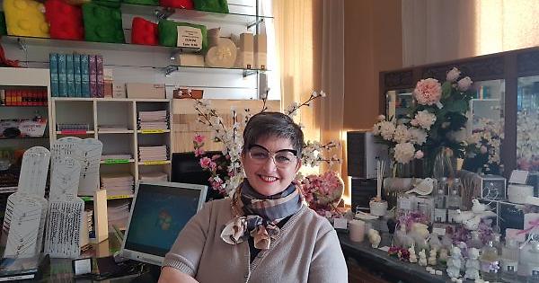 Cristina Cerato nella sua tabaccheria di Castelrosso, sita in Piazza Assunta 17