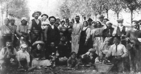 Contadini vischesi, in un momento di riposo tra i campi (da Ij casin-e. Il paesaggio agrario sul territorio di Vische di G. Baro, G. Avataneo e T. Bussetti.