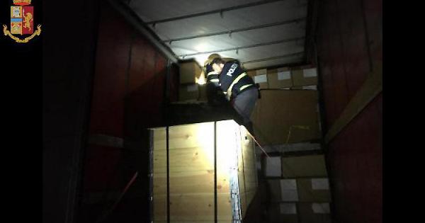 La perquisizione del Tir ad opera degli agenti della Polizia Stradale