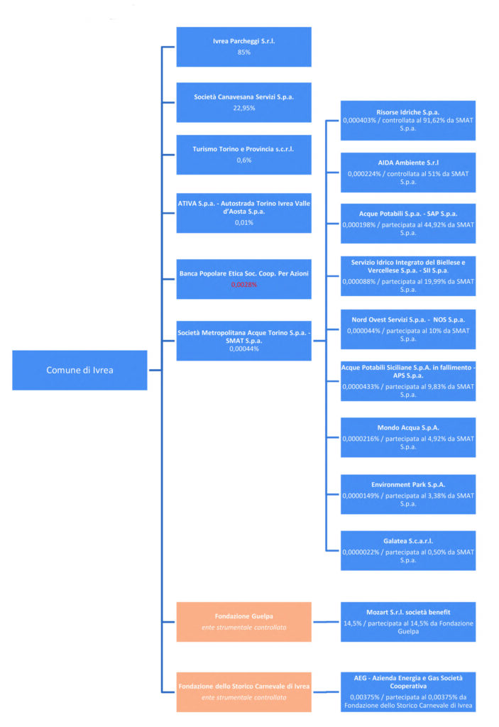 Decisamente più arzigogolato il Comune di Ivrea. Non si atteggia ad una Multinazionale (non se lo potrebbe permettere) ma poco di manca.