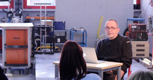 «Vi parlo e posso ascoltarvi mentre mi ascoltate»: Gabriele Vacis all’IIs Galileo Ferraris di Settimo per tre incontri con gli studenti. Un banchetto nel Laboratorio di Meccanica e una ventina di ragazzi: tre
