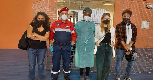 I volontari al PalaLancia con Ruth e Greta Scarano