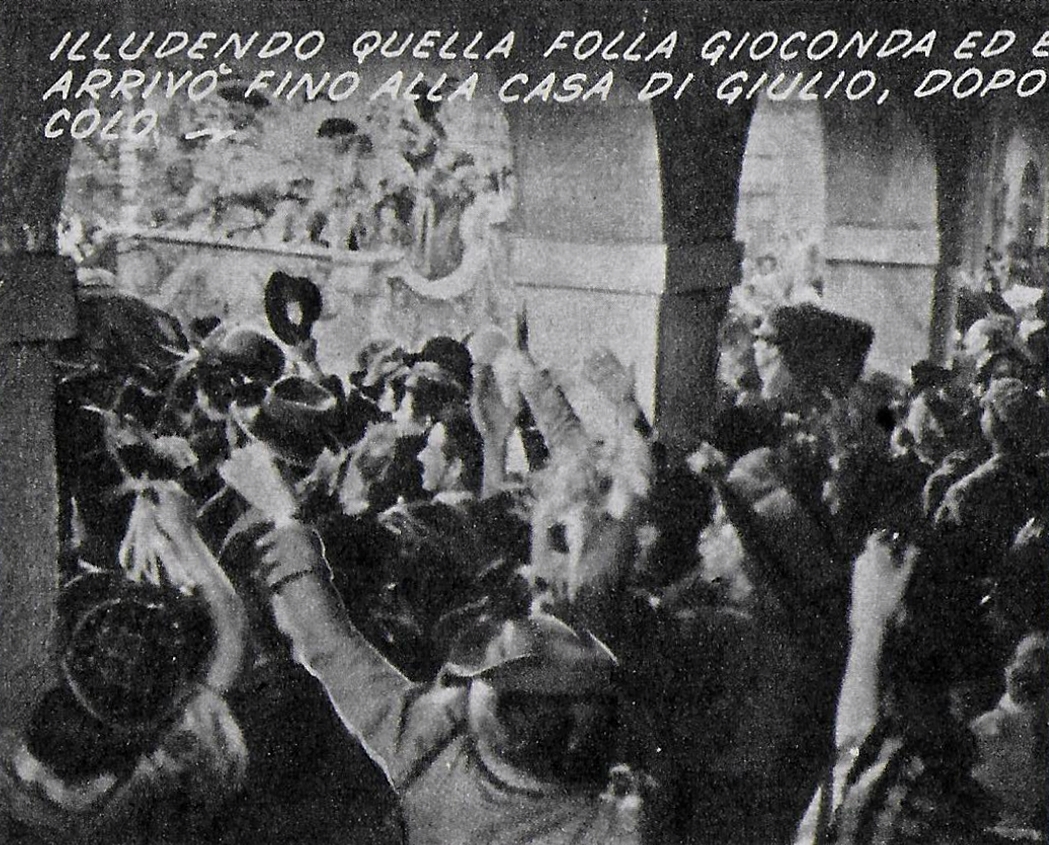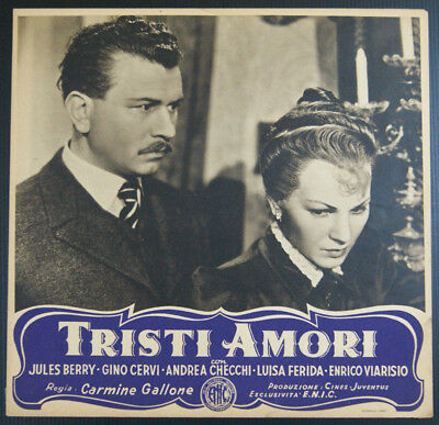Ma torniamo al cinematografo: giovedi 22 aprile 1943, in un articolo de «La Stampa» che descriveva la situazione produttiva cinematografica dell’Italia in guerra, tra le svariate notizie si leggeva che: “In Val d’Aosta, a Ivrea e a Cinecittà saranno riprese le varie sequenze di Tristi amori, regia di Carmine Gallone”. Il film era stato distribuito il 7 ottobre 1943 e durava 92 minuti anche se «La Stampa» di Torino ne dava una foto-notizia già sabato 17 luglio 1943. A Torino le proiezioni del film iniziarono sabato 30 ottobre 1943 nelle sale cinematografiche “Corso” e “Ambrosio”. Esistono ancora delle “fotobuste” del film: erano buste che contenevano una raccolta di immagini, foglietti con il cast, ed erano destinate all’affissione all’interno delle sale cinematografiche. La loro funzione era assimilabile agli odierni “trailer” dei film di prossima uscita.