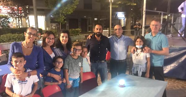 in foto, Momenti di allegria in piazza della Libertà con la Cena in Azzurro