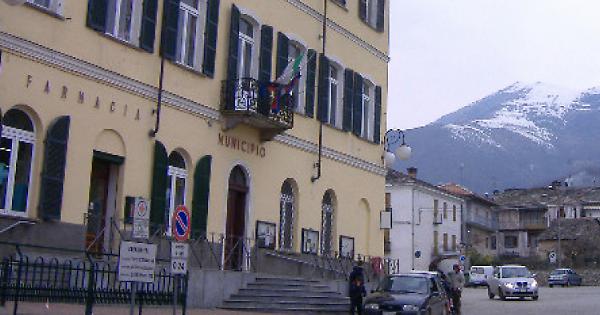 in foto, l’enorme edificio che ospita Municipio, scuola e casa di riposo