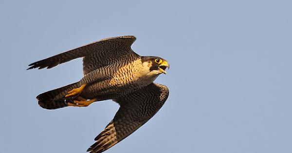 Con questo falco Mario aveva instaurato un bellissimo rapporto di reciproca affinità, come quando si alleva un cucciolo di cane. Arturo come venne chiamato il falco pellegrino non era domestico nel senso stretto della parola, ma si lasciava avvicinare da Mario e quando questi lo chiamava scendeva come un bolide in picchiata dall’alto del cielo, dove poco prima si librava in libertà e scendeva in picchiata stridendo con il suo acuto verso. Arturo era di casa e il suo becco affilato faceva parte integrante degli affetti di Mario. Arturo si fidava di Mario, di questo essere umano, si lasciava accarezzare le ali e accettava il cibo dalle mani. Che bei ricordi di Mario con Arturo, con le sue ali che erano fatte per volare veloce. Arturo era socievole, e nello stesso tempo forte ed agile, feroce e delicato. Che bello il falco pellegrino rapidissimo soprattutto in picchiata, è considerato l’animale più veloce in natura. Nei secoli gli uomini lo hanno adorato, temuto e purtroppo molto spesso anche sfruttato e perseguitato. Il falco pellegrino, Falco peregrinus, prende il nome dal piumaggio sul capo, che ricorda un copricapo scuro molto simile ai cappucci che, nel Medioevo, indossavano i pellegrini mentre compivano lunghissimi e impervi viaggi lungo le vie della devozione in tutta Europa. Il falco pellegrino, così come altre specie di falchi e anche di rapaci in generale, è associato alle vette del cielo e anche agli astri, in particolare al Sole. Questo viene soprattutto dalla mitologia egizia che identificava in Horus, figlio di Osiride e Iside, il dio solare per eccellenza. Proprio per la sua potenza e velocità nella caccia, il falco pellegrino è un uccello tenuto in grande considerazione, spesso anche con un certo timore reverenziale. La simbologia cristiana tende ad associare a questi rapaci vagabondi l’idea dell’anima errante e senza guida, ma in generale la letteratura medievale, così come per quasi tutti gli animali che, volando alti in cielo, arrivano più vicini a Dio, lo tratta con chiaro rispetto. Il sommo Dante nella Divina Commedia lo cita nel XIX canto del Purgatorio, lo paragona a sé stesso che fino ad allora aveva guardato in basso e invece ora è pronto a sollevare lo sguardo: “Quale ‘l falcon, che prima a’ pié si mira, / indi si volge al grido e si protende / per lo disio del pasto che là il tira”.