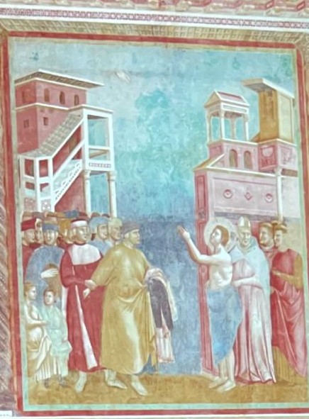 Quando Giotto arrivò nella basilica superiore di San Francesco ad Assisi, altri artisti avevano finito da poco di completare scene dell’Antico e del Nuovo Testamento nella parte superiore delle pareti. Il suo compito era quello di collegare il messaggio generale: il fatto che l’Antico Testamento prediceva la venuta di Cristo, e che Cristo chiamava Francesco a imitarlo in un modo unico nella storia attraverso le stigmate. Mediante una serie di rapporti, paragoni e analogie, i pellegrini che visitavano la basilica vedevano collegamenti e analogie tra i profeti, Cristo e Francesco negli affreschi superiori e inferiori. L’artista voleva mostrare che la spiritualità cristiana non era limitata all’aldilà. La vita non era una valle di lacrime in preparazione al Paradiso. Giotto interpretò il messaggio di San Francesco, secondo il quale la gente poteva iniziare a vedere e a sperimentare la bontà, la verità e la bellezza di Dio già in questo mondo.