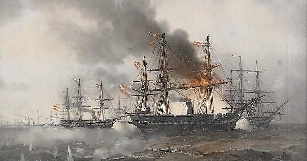 Ancona. Era iniziata la prima battaglia tra corazzate della storia mondiale. A ingenerare ulteriori incertezze, subito si creò tra le navi impegnate allo scontro una densa cortina di fumo provocato dalle artiglierie e dalle ciminiere delle macchine a vapore. Fortunatamente le navi Italiane erano appena state dipinte tutte di grigio cenere, a differenza di quelle Austriache che erano dipinte di nero. Alla prima bordata italiana, gli Austriaci risposero debolmente per la scarsità dei pezzi utilizzabili nel settore prodiero. Un proiettile decapitò il comandante del