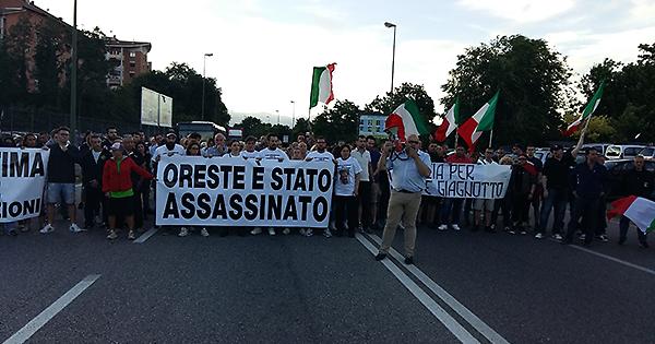 Il corteo ha percorso strada dell’Aeroporto ed è arrivato sventolando il tricolore all’altezza del campo nomadi al grido di “Oreste, Oreste, giustizia, giustizia”.