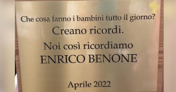 “Cosa fanno i bambini tutto il giorno? Creano ricordi. Noi così ricordiamo Enrico Benone”. E’ questa la scritta sulla targa commemorativa che l’Amministrazione Comunale ha posto all’ingresso del nuovo parco creato nella frazione San