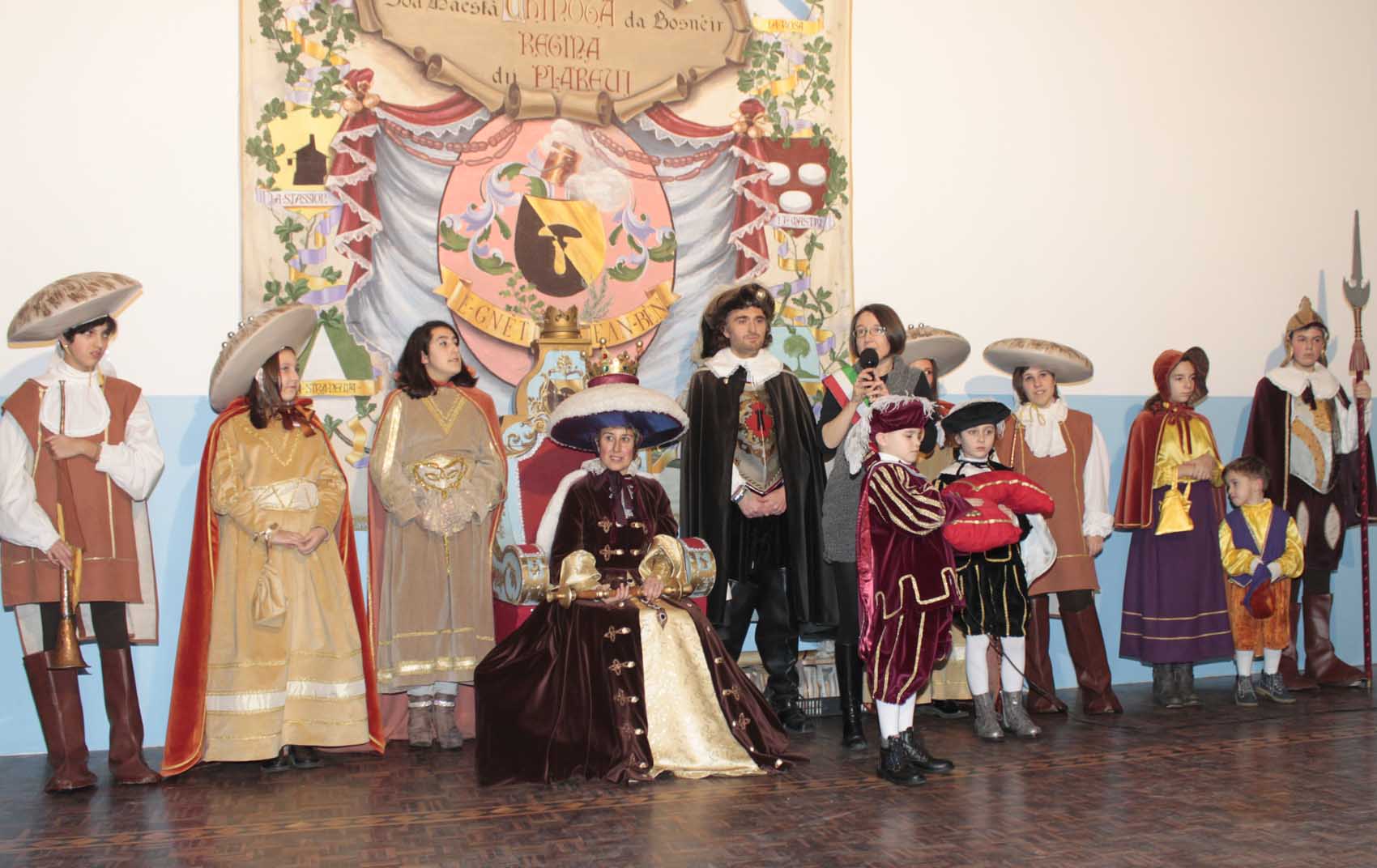 Il corpo carnevalesco che l'accompagnera' per tutto il tempo della sua avventura è cosi' composto da: Alessandro Bagarello e Mirko Marengo come Alabardieri, Elisabetta Liprandi e Michela Seminara come Damigelle, Giorgia Bianco e Alessia Forestan come Trombettiere, Michelle e Nicole Parena come damigelline, Alessio Marengo e Gaia Franchin come Paggetti, Marco e Giorgio Caltabellotta e Alice Franchin come Paggettini.