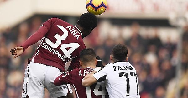 Il Torino supera l'Udinese 1-0 con un gol di testa di Aina e balza all'ottavo posto, superando in un colpo solo Sampdoria e Fiorentina. Una punizione troppo severa per i friulani, che dopo un primo tempo accorto hanno cambiato marcia mettendo in serie difficoltà la squadra di Mazzarri, espulso al 12' della ripresa. De Paul ha sbagliato al 30' st il rigore del pareggio, assegnato dalla Var e neutralizzato da Sirigu, migliore in campo. L'Udinese ha segnato due volte il gol del pari con Okaka, ma in entrambi i casi l'1-1 è stato annullato per fuorigioco. La traversa nel finale dell'Udinese è stata l'ultima beffa di una partita che ha visto come grande protagonista la Var: ben tre gli interventi del supporto tecnologico durante il match. Strepitosa la prova di Sirigu, autore di alcuni interventi miracolosi culminati con il rigore parato e l'intervento in pieno recupero su tiro di De Paul deviato da Djidji, ottimi anche Rincon e Ansaldi: senza gli squalificati N'Koulou e Zaza, sostituiti da Djidji e Iago Falque, il Torino è partito forte trovando al 19' l'occasione più ghiotta per Belotti, perfetto nel colpo di testa almeno quanto Musso nella strepitosa parata. Al 27' Okaka è arrivato in ritardo di un soffio all'appuntamento con il gol, quattro minuti dopo il Torino è passato in vantaggio con Aina, gol nato da una palla recuperata in attacco da Belotti e splendidamente confezionata da Ansaldi. De Paul ha costretto in calcio d'angolo Sirigu, l'ultimo sussulto è arrivato alla fine della prima frazione, quando Rincon ha salvato su tiro di Pussetto generando il contropiede di Belotti che ha servito Falque in area: sul tiro dello spagnolo il tocco di mano di Stryger Larsen non è stato sanzionato da Guida. In vantaggio di una rete il Torino ha tenuto alto il baricentro, impegnando Musso con Berenguer e Iago Falque. Poi Mazzarri è stato espulso per proteste da Guida. Al 27' un'incertezza difensiva dei granata ha innescato l'attacco friulano: palla a Okaka, contrastato fallosamente da Djidji, rigore dopo il consulto alla Var del direttore di gara. Penalty di De Paul neutralizzato da Sirigu, che al 38' non ha potuto nulla sul tiro ancora di Okaka, gol annullato per fuorigioco di Lasagna. La pressione della squadra di Nicola si è concretizzata al 44', quando ancora Okaka ha realizzato la rete del pareggio, urlo ricacciato in gola dalla Var. L'ultima azione dopo 11' di recupero è nata ancora dai piedi di Lasagna, che ha servito De Paul a centro area: tiro a botta sicura deviato da Djidji, Sirigu e beffato dalla traversa.