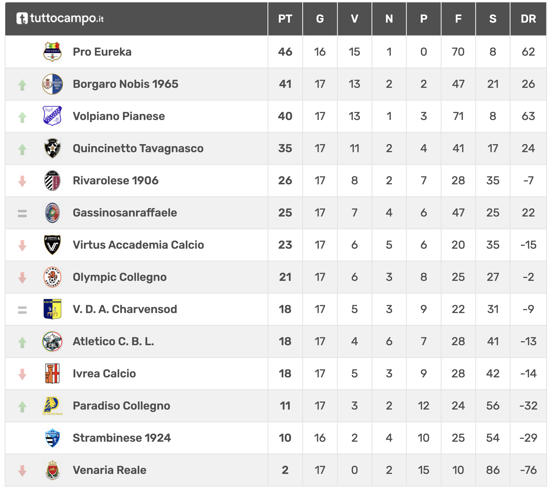 Nel girone B del campionato regionale Under 15, la capolista Pro Eureka non è scesa in campo in quel di Strambino, ma nonostante una gara in meno mantiene saldamente la classifica con 5 punti di vantaggio sul Borgaro e 6 sul Volpiano Pianese.
