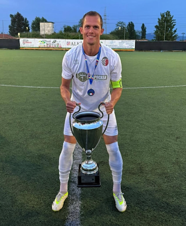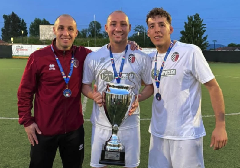 Lo staff tecnico della Rivarolese festeggia la Coppa Italia