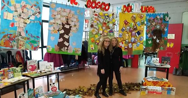 Cinque bellissimi alberi autunnali, ciascuno realizzato con tecniche artistiche differenti, hanno formato il “Bosco dei Libri”. Ai piedi del quale sono stati messi tutti i libri donati.