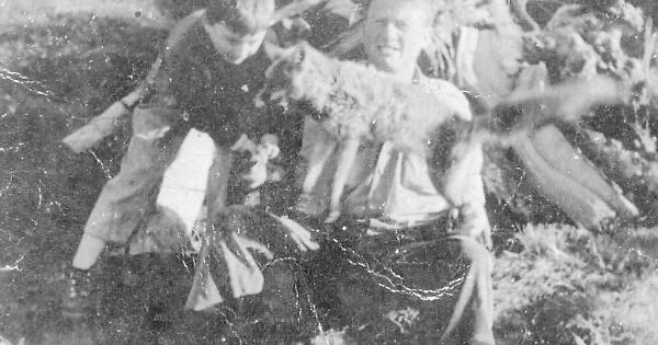 Lindo Bertello con il figlio e una volpe, anni 50