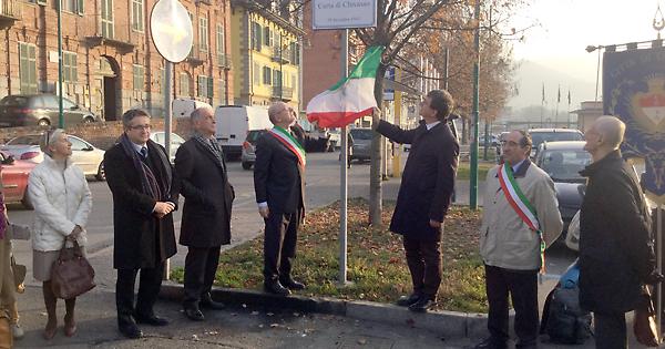 Da oggi piazza d'Armi sarà divisa in due. Il lato verso via Torino, fronte OVS, si chiamerà Piazza "Carta di Chivasso", la dichiarazione dei rappresentanti delle popolazioni alpine firmata il 19 dicembre 1943 proprio in città e che postulava la realizzazione di un sistema politico federale e repubblicano su base regionale e cantonale.