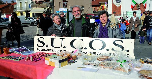 Sergio Sosso con i volontari Sucos in piazza Assunta a Castelrosso