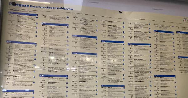 La bacheca con gli orari dei treni è aggiornata al 20 dicembre scorso
