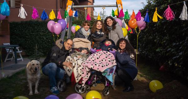 La consegna dell'altalena alla famiglia di Matilde e Margherita