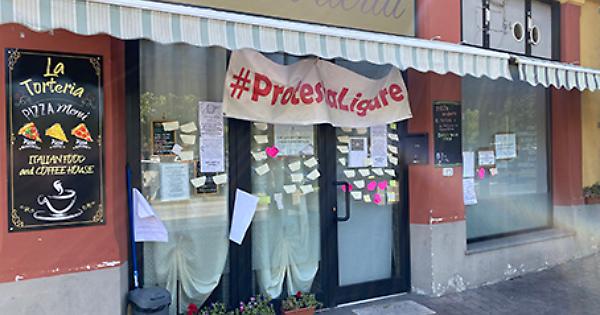 I messaggi lasciati sulle vetrine de La Torteria quando il locale fu posto sotto sequestro