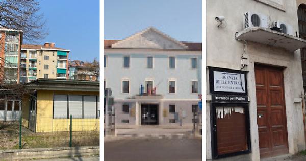 Gli edifici che avrebbero potuto o potrebbero ospitare la Casa della Salute a Chivasso L’ex scuola Marsan è stata bocciata dalla maggioranza (a sinistra). Restano Palazzo Einaudi e l’ex Cinecittà di piazza del Popolo