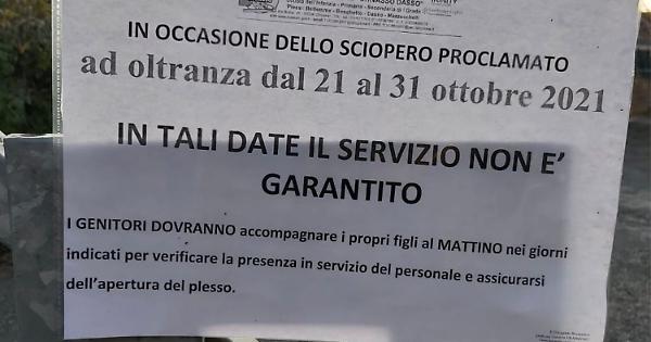 Il cartello affisso al cancello di ingresso che avvisava dello sciopero