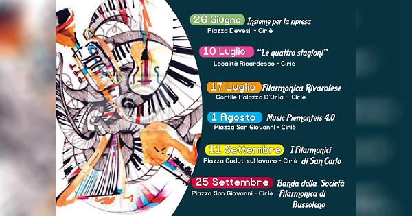 Al via sabato 26 giugno 2021 il Cirié Music Festival, la rassegna di musica bandistica organizzata dai Music Piemonteis, con il patrocinio del Comune di Ciriè, della Regione Piemonte e con il sostegno di Anbima Piemonte.