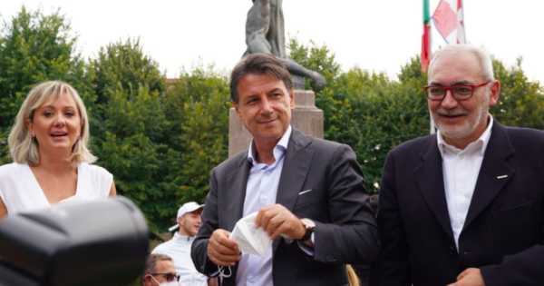 L'ex premier Giuseppe Conte a Ciriè con Silvestro e Ballarini