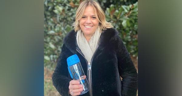 Loredana Devietti con la borraccia dell'ATO3 donata ai bambini