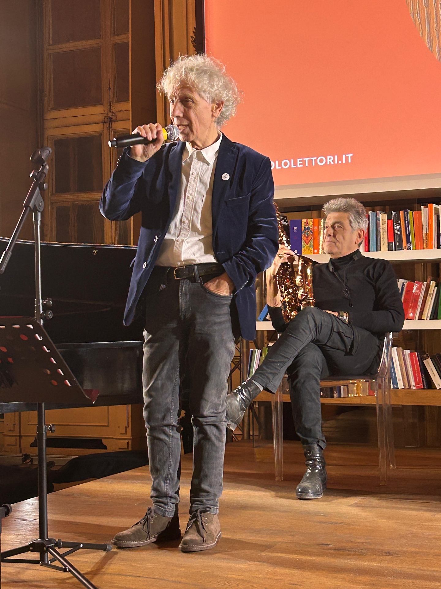 Il salone era pieno e il pubblico è stato partecipe ed entusiasta. Deidda è da anni soprannominato il cantapoeta, nome assegnatogli per la sua rara capacità nel trasformare testi e poesie di importanti scrittori in musica. Unico in Italia in questo genere, i suoi lavori creano un’armonia singolare e preziosa tra parola-musica-pensiero. Deidda con maestria dà fiato a quelle parole, evocando atmosfere sublimi, dando la possibilità, a chi ascolta, di viaggiare in mondi lontani nello spazio e nel tempo.