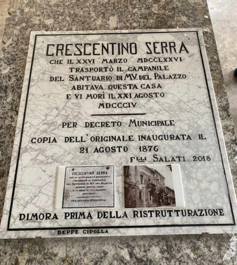 La mostra, che si sarebbe dovuta tenere nei locali del nuovo oratorio parrocchiale, sarà recuperata nel corso dell’anno, così come la conferenza sulla figura del Serra preparata da Ogliaro e l’apposizione della targa commemorativa sull’edificio di corso Roma in cui sorgeva la casa natale del capomastro; targa che è stata riprodotta artigianalmente dai fratelli Salati sul modello dell’originale andato perduto. Quest’ultima idea era nata in occasione della stampa del volume dedicato a Crescentino Serra scritto dal compianto Giuseppe Cipolla, e alla cui memoria verrà dedicata.