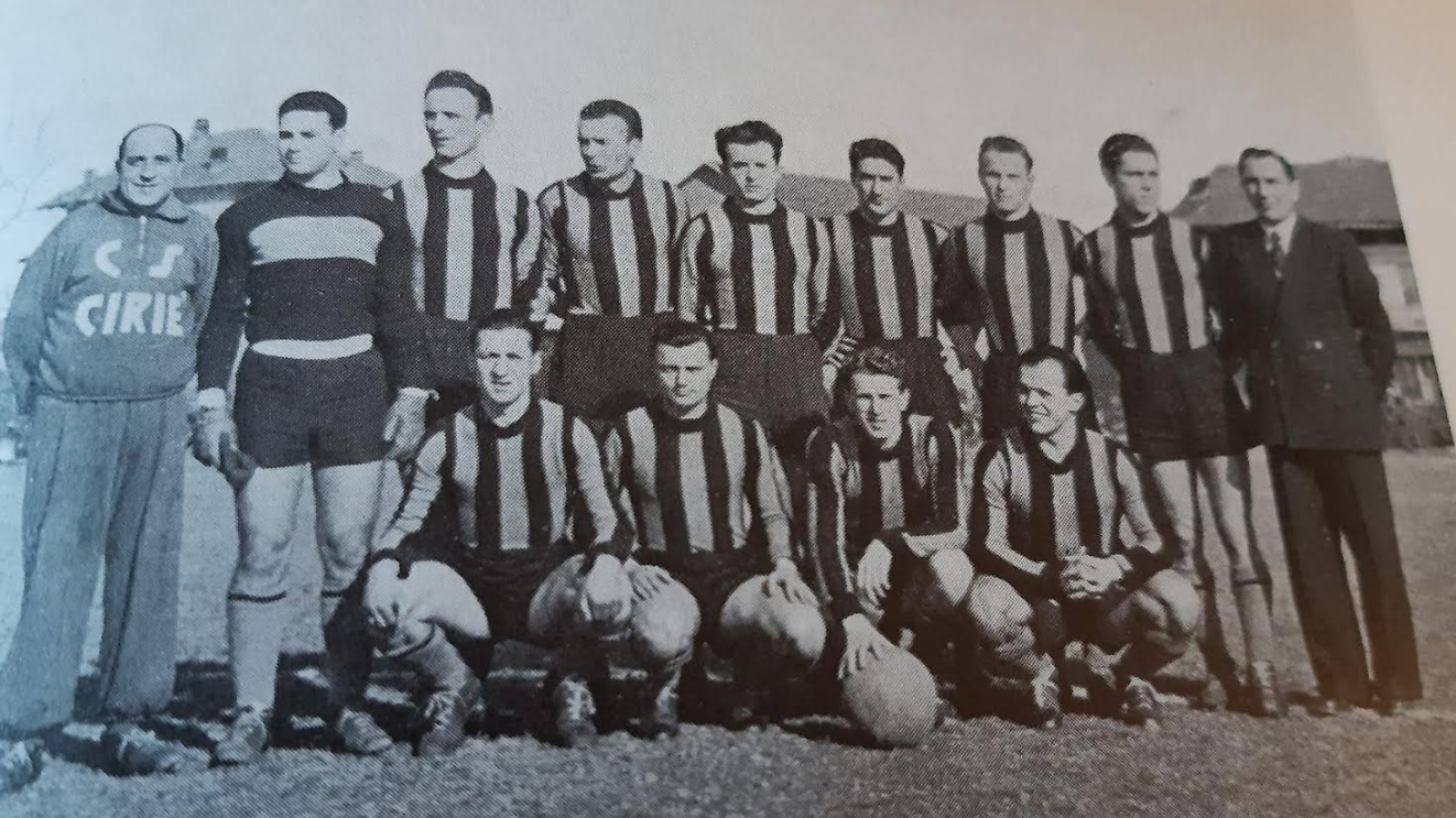 MARIO SASSO, il terzo in alto da desta, con la maglia del Club Sport Ciriè