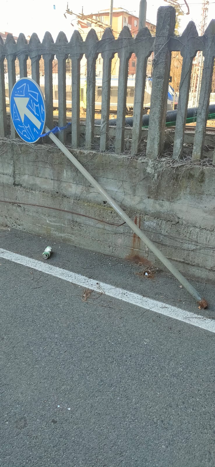 "Nel frattempo ho legato il cartello con del fil di ferro alla recinzione in cemento della ferrovia, per evitare altri guai", conclude il consigliere.