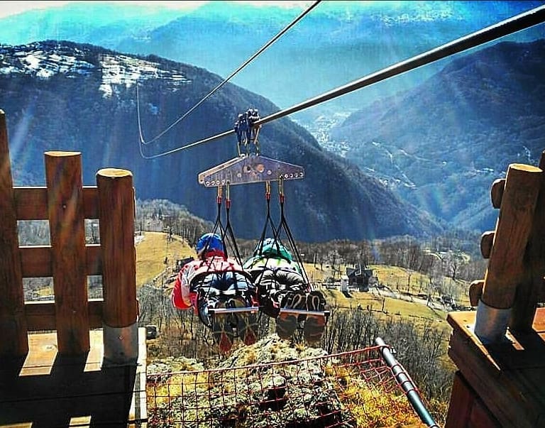 E’ l’emozione di volare da soli o in due. Unendo il brivido dell’avventura e il sentimento, lo sport con i panorami naturali, attraverso un’imbracatura assicurata ad un carrello, che scorre liberamente lungo un cavo d’acciao sospeso tra vette e valloni capace di portare, insieme, anche due persone.