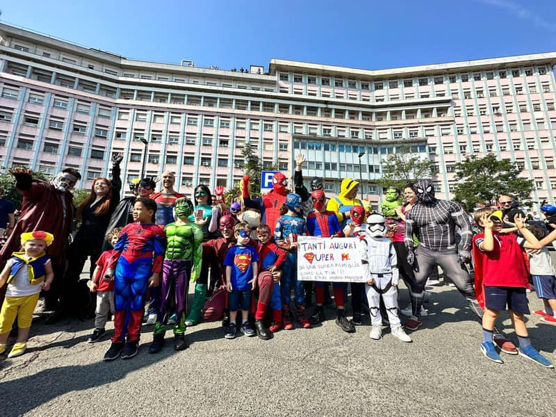 Davanti all'ospedale infantile Regina Margherita, lo scorso 2 giugno, erano arrivati in tanti, grazie a una onlus, vestiti come Spiderman e gli altri protagonisti dei fumetti della Marvel.