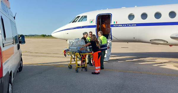 Si è concluso poco prima delle 20 di venerdì 11 Agosto il trasporto sanitario d'urgenza di un bimbo di un mese e mezzo, in pericolo di vita, da Alghero a Torino, effettuato con un velivolo F50 dell'Aeronautica Militare.
