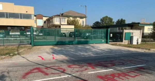 "Assassini! Basta appalti" è la scritta trovata questa mattina di fronte alla SiGiFer di Borgo Vercelli
