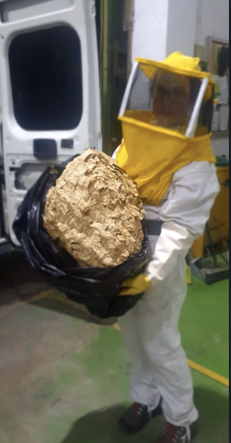 Tant’è. Sempre nella serata di venerdì, poi, i volontari dell’AIB hanno fatto il bis, con gli operatori Andrea e Florence, guidati da Scalafiotti, intervenuti a Sciolze per rimuovere un altro nido, talmente grosso da doverlo “portare in braccio” e non tenere in mano.