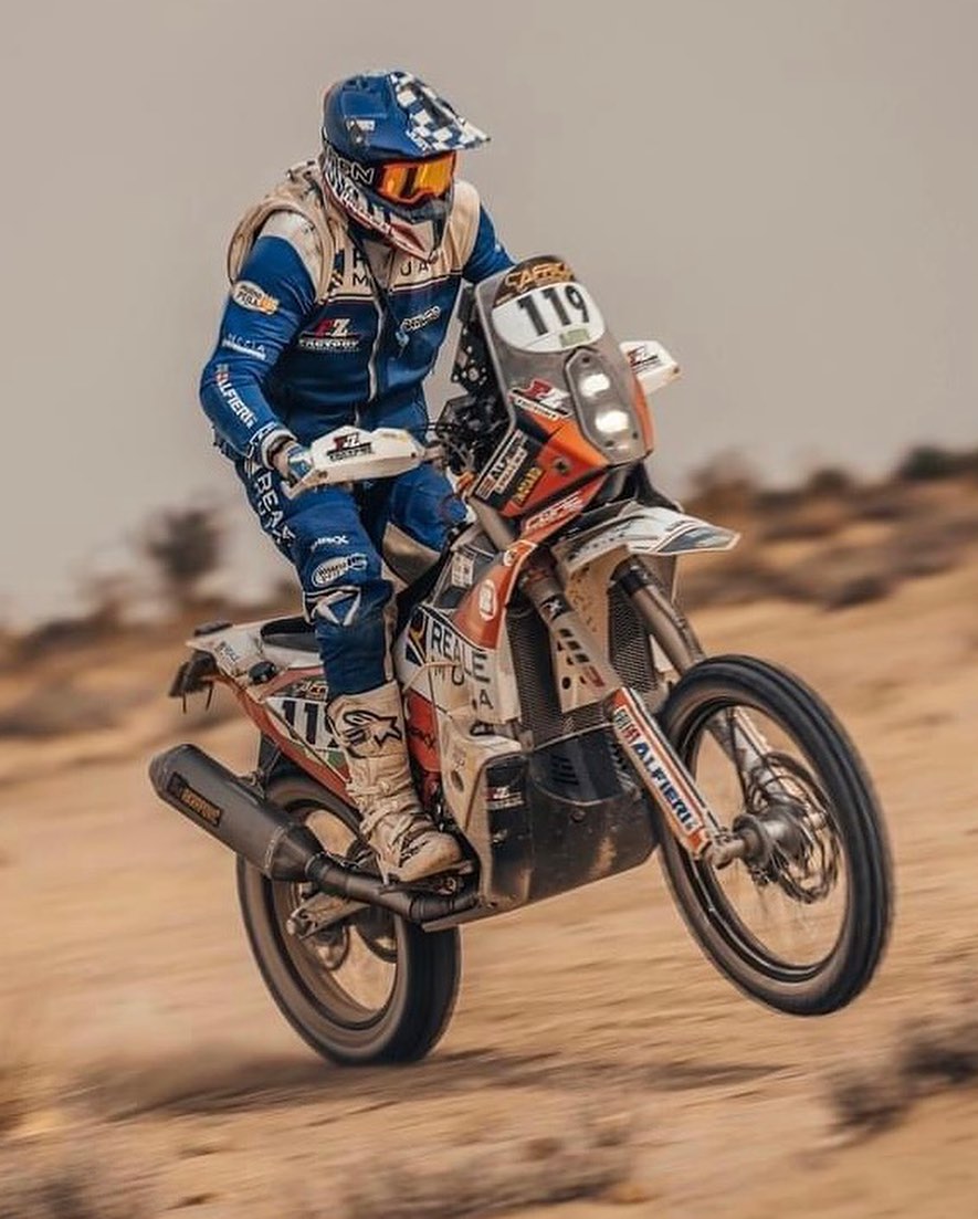 Mercoledì 10 gennaio si stava correndo l'ottava tappa, quella che porta i piloti da Chami ad Amodjar, un viaggio nel cuore della Mauritania. "478 chilometri di cui 390 di prova speciale cronometrata" come racconta Beppe Cuocco su Motociclismo. Un viaggio tra dune, percorsi fuoripista, piste sabbiose e tracciati "tecnici".