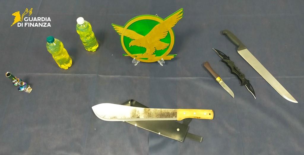 Coltelli, machete, benzina e hashish: è il contenuto dell’auto fermata dalla Guardia di Finanza a Savona. A bordo quattro ragazzi torinesi, tra cui un 25enne senza patente ora denunciato per porto d’armi.