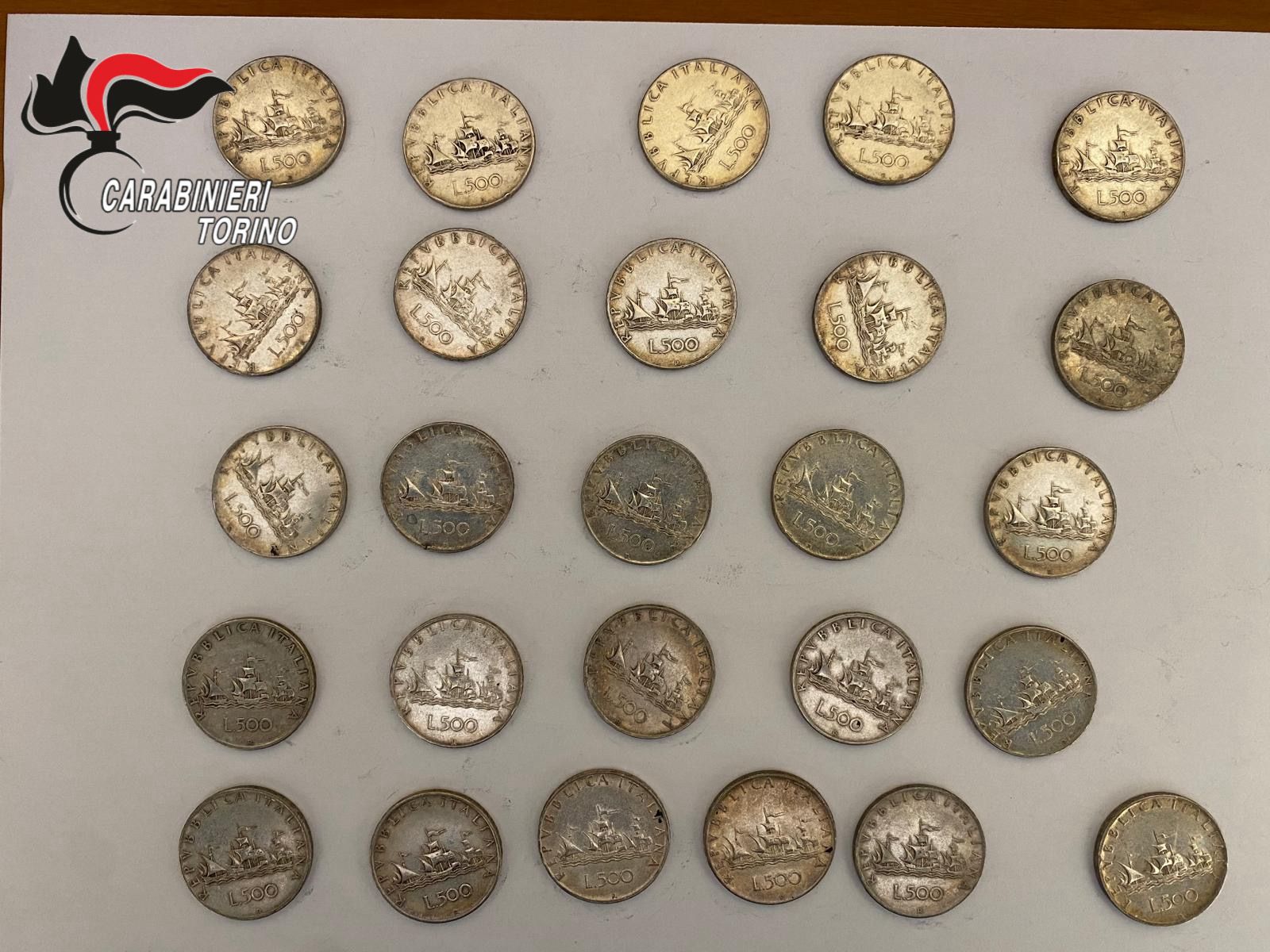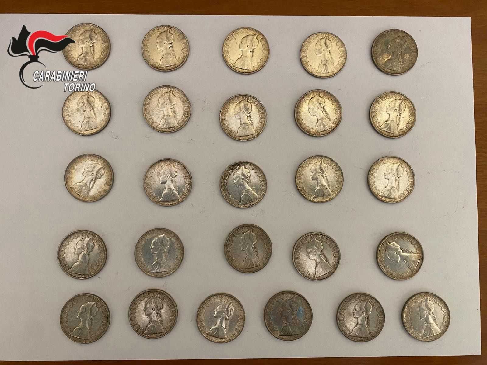 Nell’abitazione dei coniugi di Montalenghe, i militari hanno trovato in un armadio sette bombolette spray al peperoncino, mascherine chirurgiche, ricetrasmittenti con auricolari, un detector di gas falso, tesserini contraffatti con il logo dell’Arma, un berretto, guanti, pettorine catarifrangenti e mazzi di adesivi alfanumerici, probabilmente utilizzati per alterare targhe di veicoli impiegati durante i colpi. Accanto a questo, 640 euro in contanti, in banconote di diverso taglio. Il quadro si è aggravato quando, sotto il sedile posteriore dell’auto, i carabinieri hanno rinvenuto 26 monete d’argento da 500 lire di dubbia provenienza, mentre in casa è stata scoperta una pianta di marijuana alta un metro e venti, anch’essa finita sotto sequestro.
