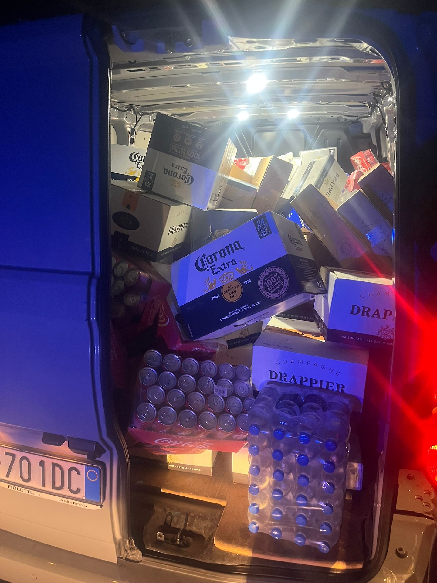 Le verifiche successive hanno permesso di accertare che il furgone era stato rubato a Brescia nei giorni scorsi e utilizzato per il colpo. All’interno, i militari hanno trovato tutte le 62 casse di champagne rubate, per un valore stimato di diverse migliaia di euro, oltre ad altre bevande alcoliche e non.