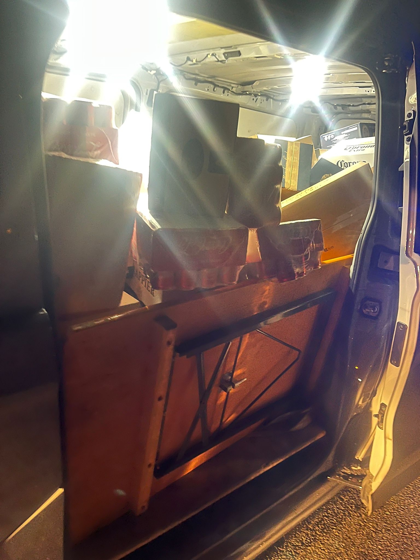 Rubano 62 casse di Champagne a Settimo Torinese, l'inseguimento finisce tra i campi (foto: il mezzo e la refurtiva)